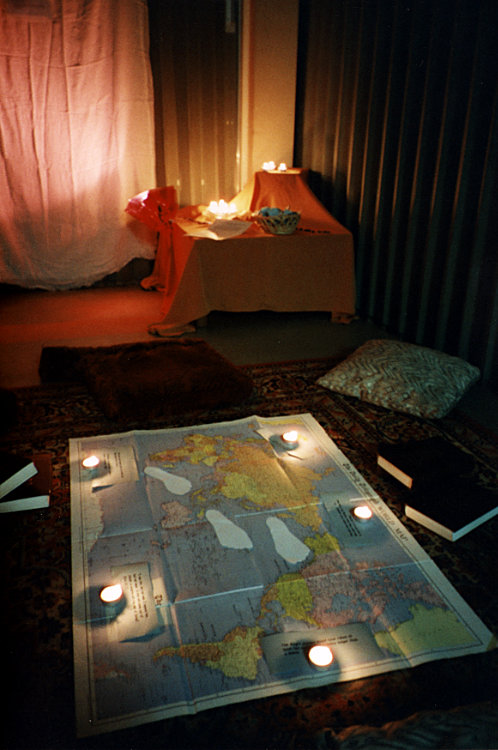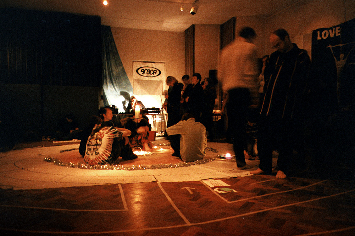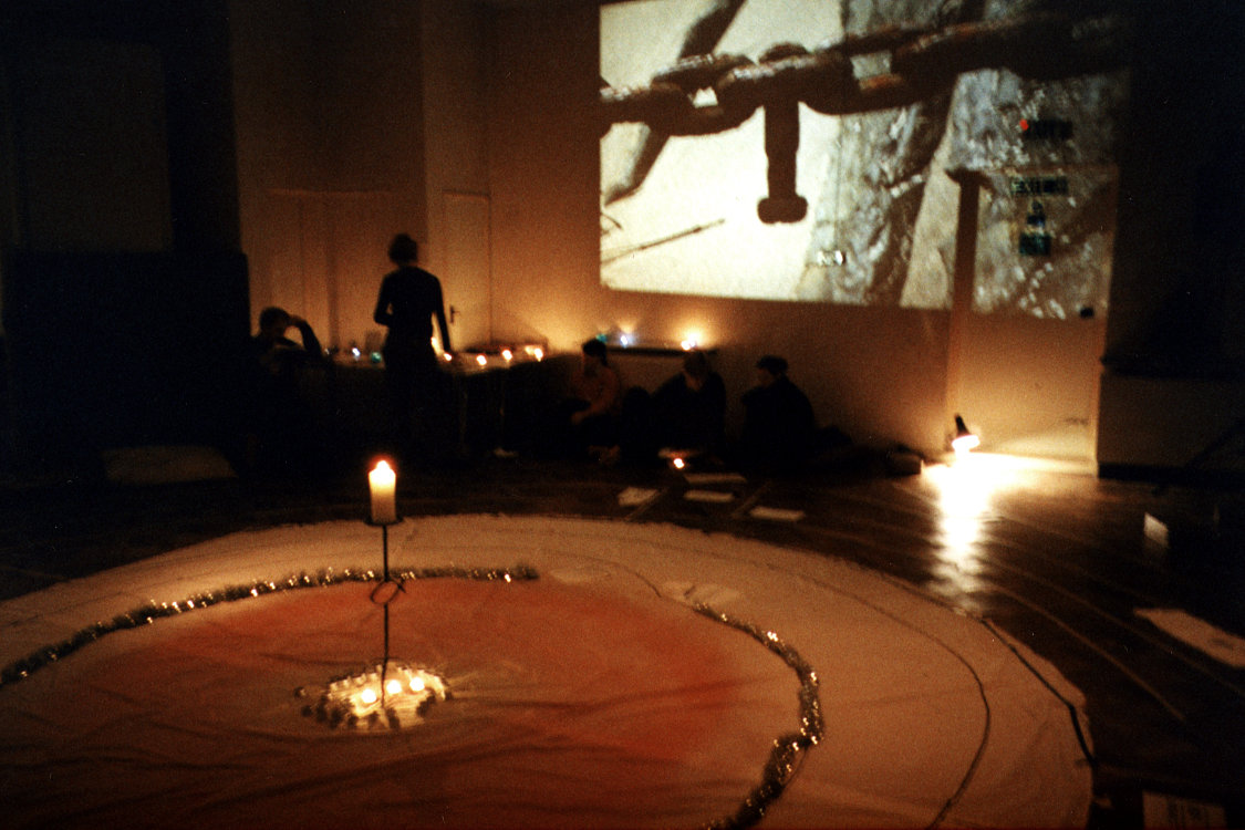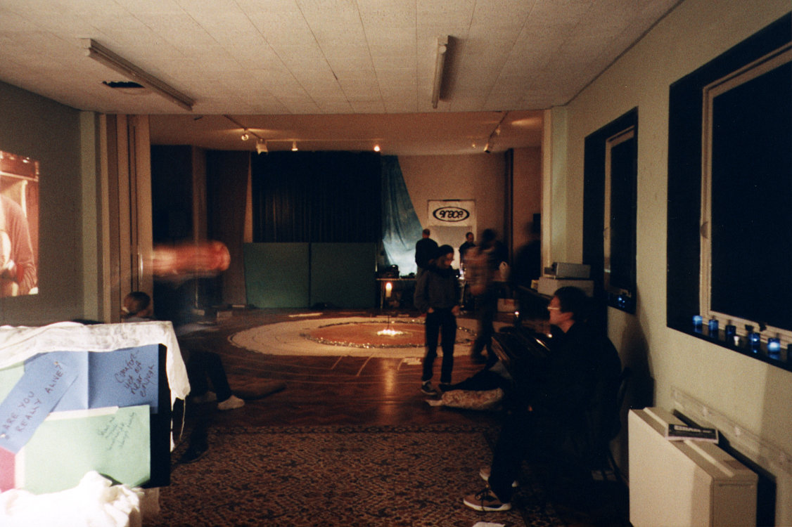 Christmas Labyrinth 1998, with Live On Planet Earth. LOPE had developed their labyrinth service in their previous church in Kent, and brought it to Grace in the late 90s when they moved to North London. This time the labyrinth was themed around the Annunciation and Advent. Above, marking out in the church hall. |