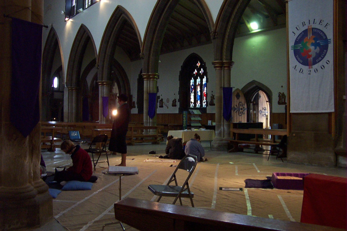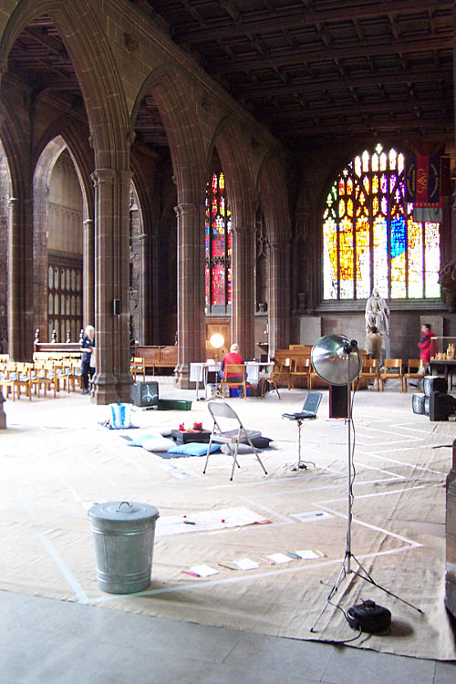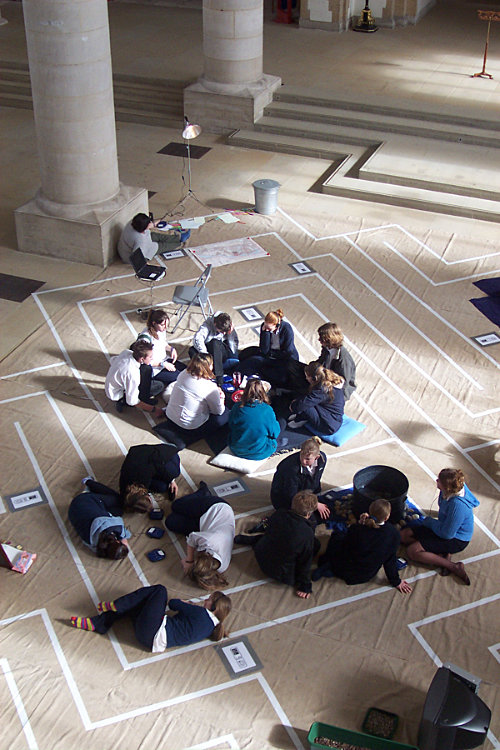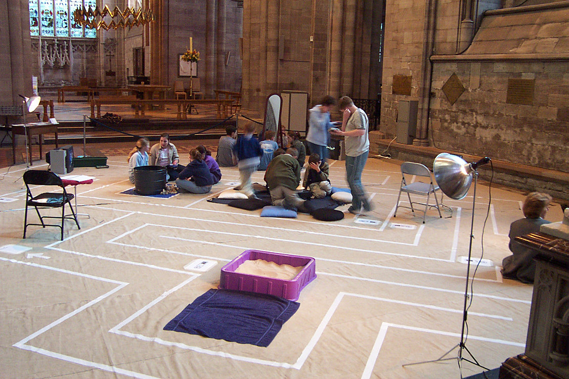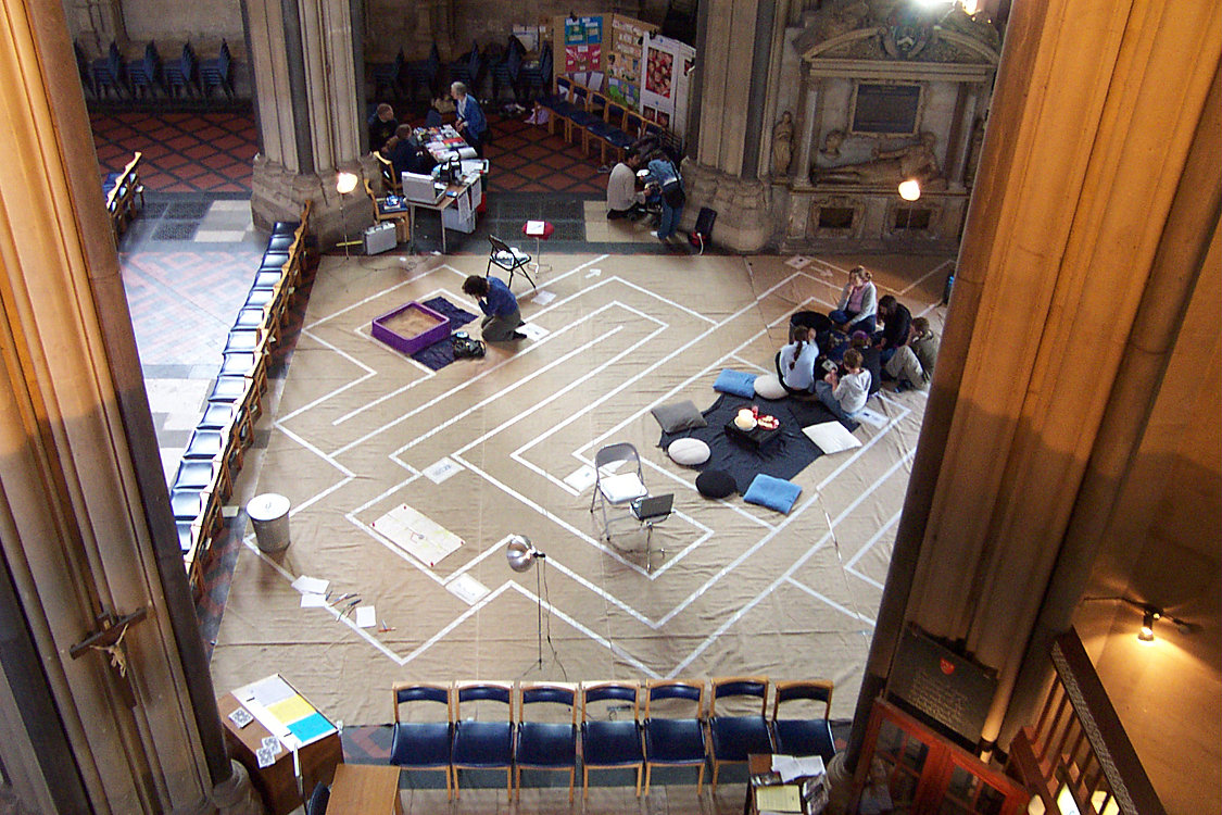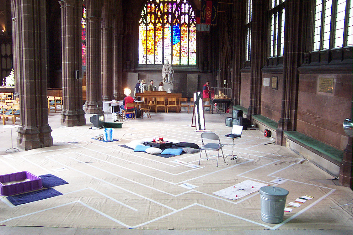Youth for Christ took the labyrinth on a cathedral tour of England in 2001-02 with a small team. Above, Birmingham Cathedral. Photos © Steve Collins & the YfC Labyrinth Tour team. |