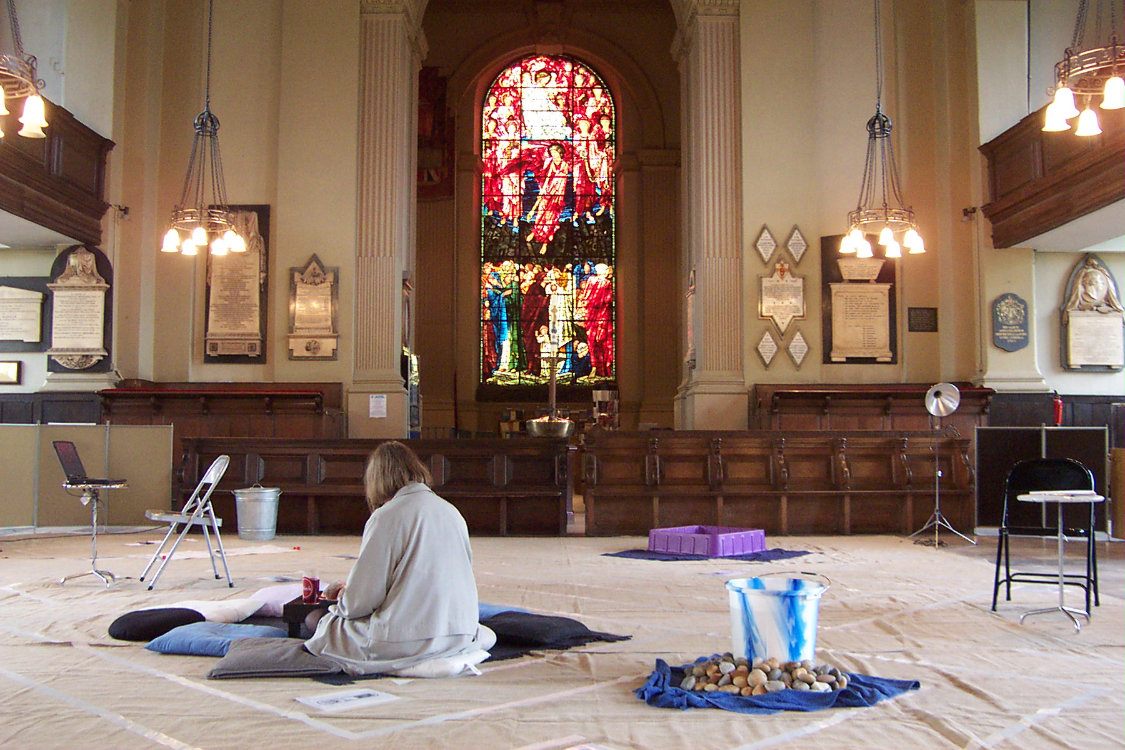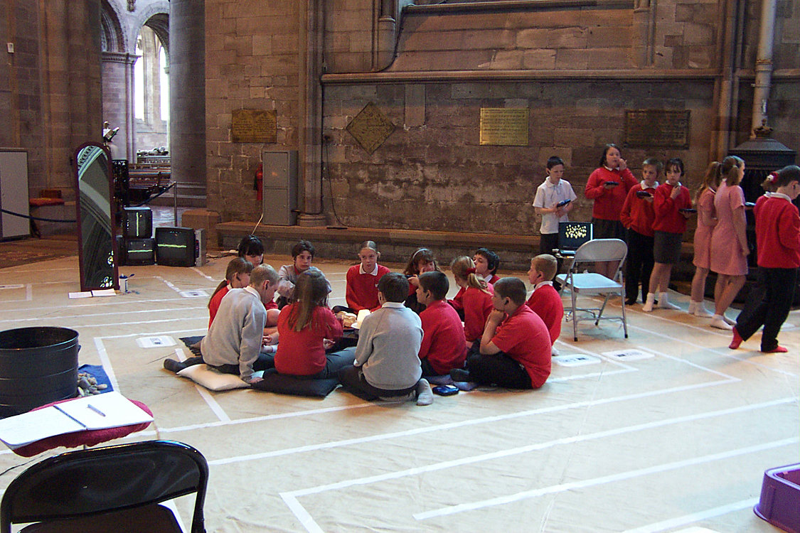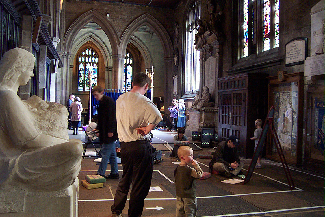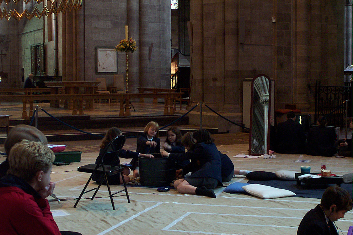 Youth for Christ took the labyrinth on a cathedral tour of England in 2001-02 with a small team. Above, Birmingham Cathedral. Photos © Steve Collins & the YfC Labyrinth Tour team. |