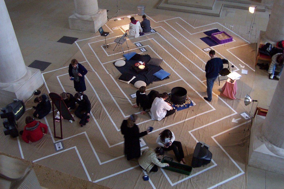 Participants carry music players and listen to the music and meditations on headphones as they walk the labyrinth.
