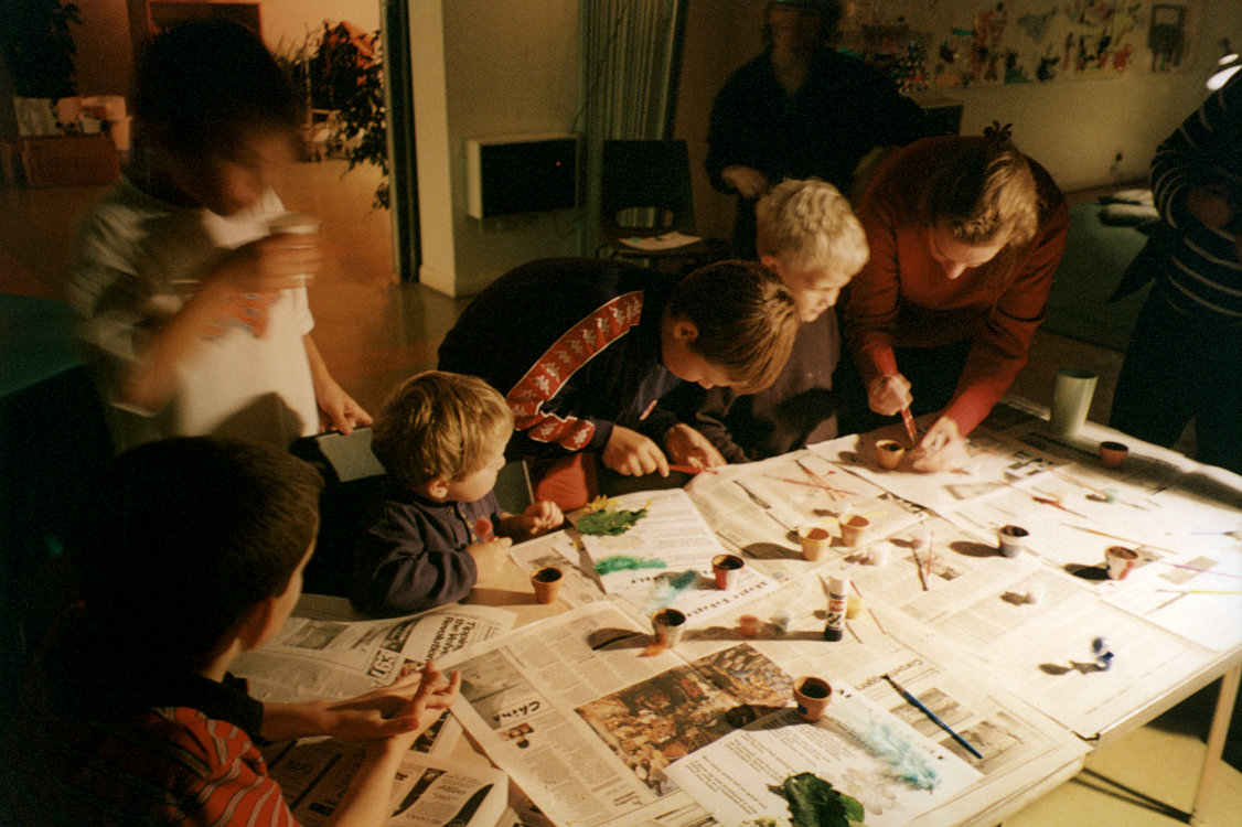 ...then paint the pot in the cafe. Many of the children preferred to plant the coloured feathers in their pots! |
