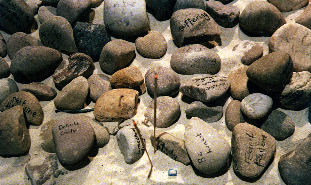 'With charcoal write a word, or words on a stone, about those things that test you.' |