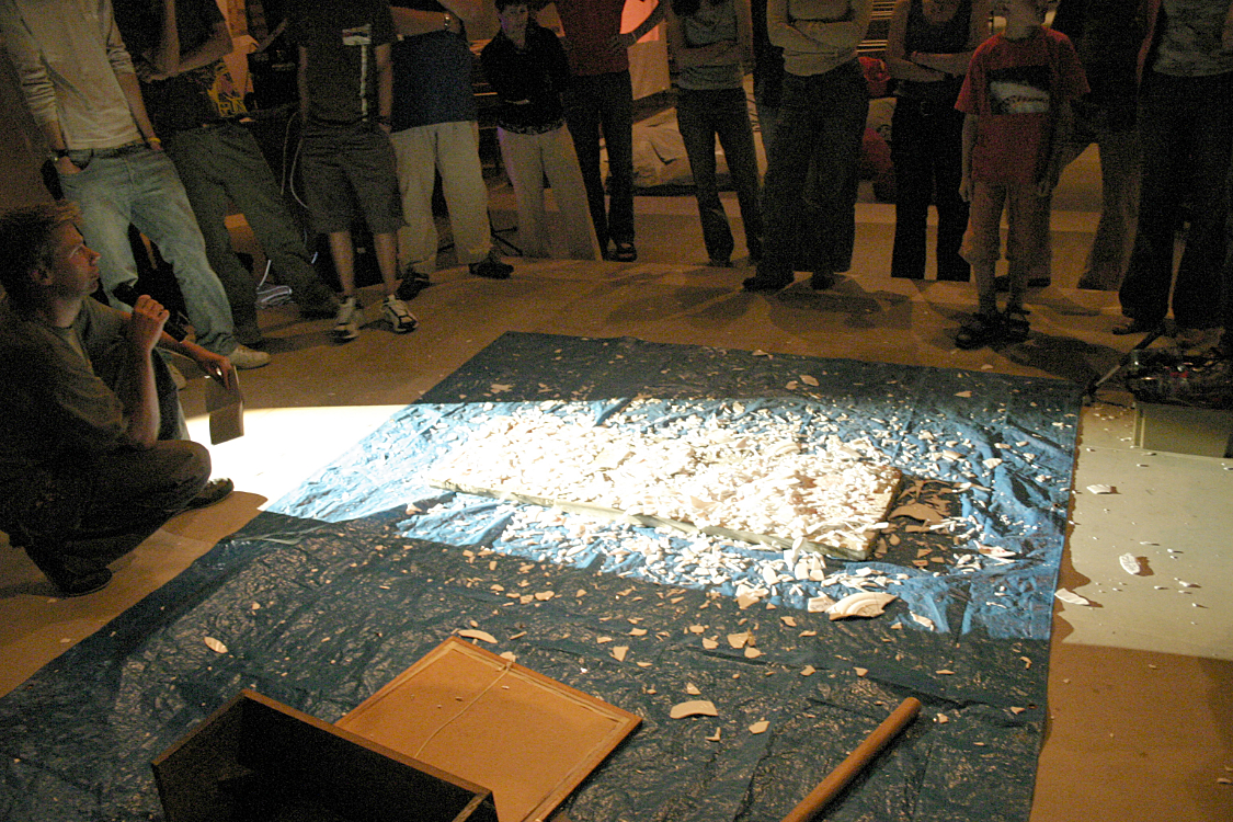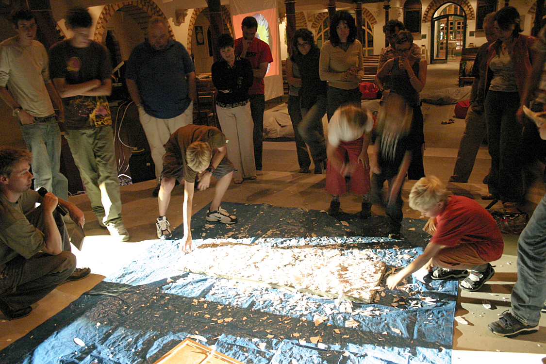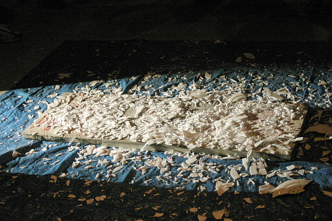 We invite people to put one or more broken pieces in a bag to take away, with a sheet inviting them to think about where they might engage. |