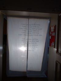 To enter the worship space the congregation had to pass through curtains, onto which were projected a traditional celtic prayer - the starting point for the worship. The worship ended with the opportunity to write your own 'celtic-urban' prayer. |
