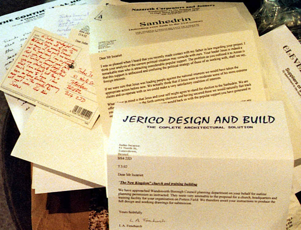 'Dear Mr Iscariot....I think your analysis of the current political situation may coincide with ours. Your leader Jesus is indeed a remarkable man who is attracting considerable popular support. The problem as you outlined it to Annas is that this support is unfocussed and confusing the political strategy of those of us working with, shall we say, foreign interests. If we were sure that Jesus was leading people against the national interests we would have taken the appropriate action before now. We actually think that if Jesus were to moderate some of his more extreme claims and cooperate with us we could make a very satisfactory coalition of interests. What I have in mind is that Jesus and yourself might agree to stand for election to the Sanhedrin.' |