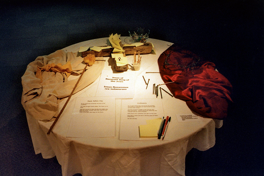 An exhibition open to the public from Maundy Thursday to Easter Sunday, each Station an artwork by a different artist or artists. The explanations are derived from the artist's own descriptions of their work. |