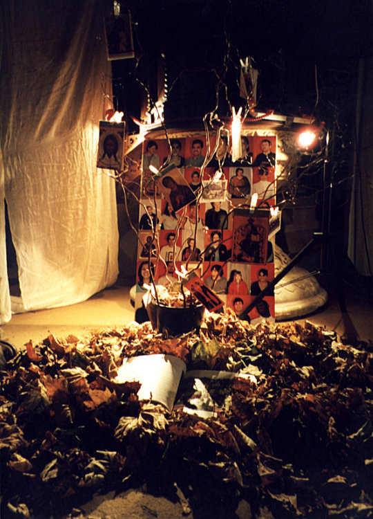 The congregation as living saints, the autumn leaves for the dead, images of Christ in the branches - Christ in history revealed by the falling of the leaves. |