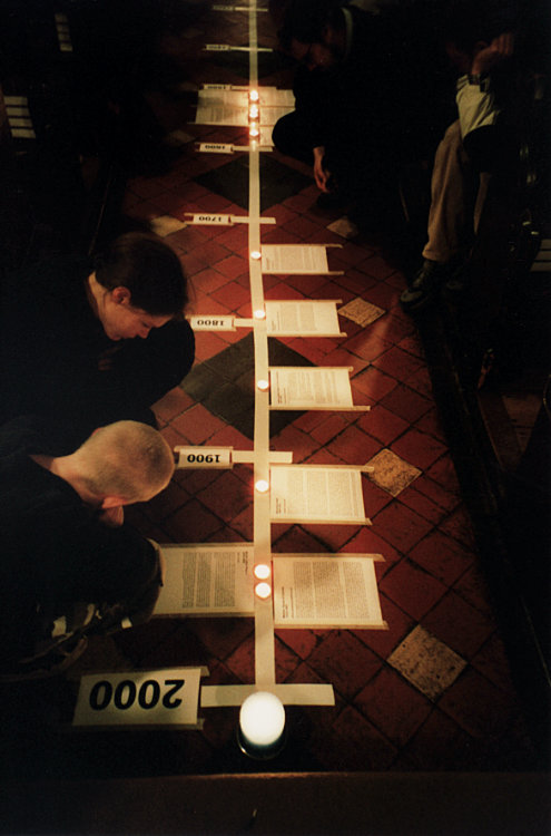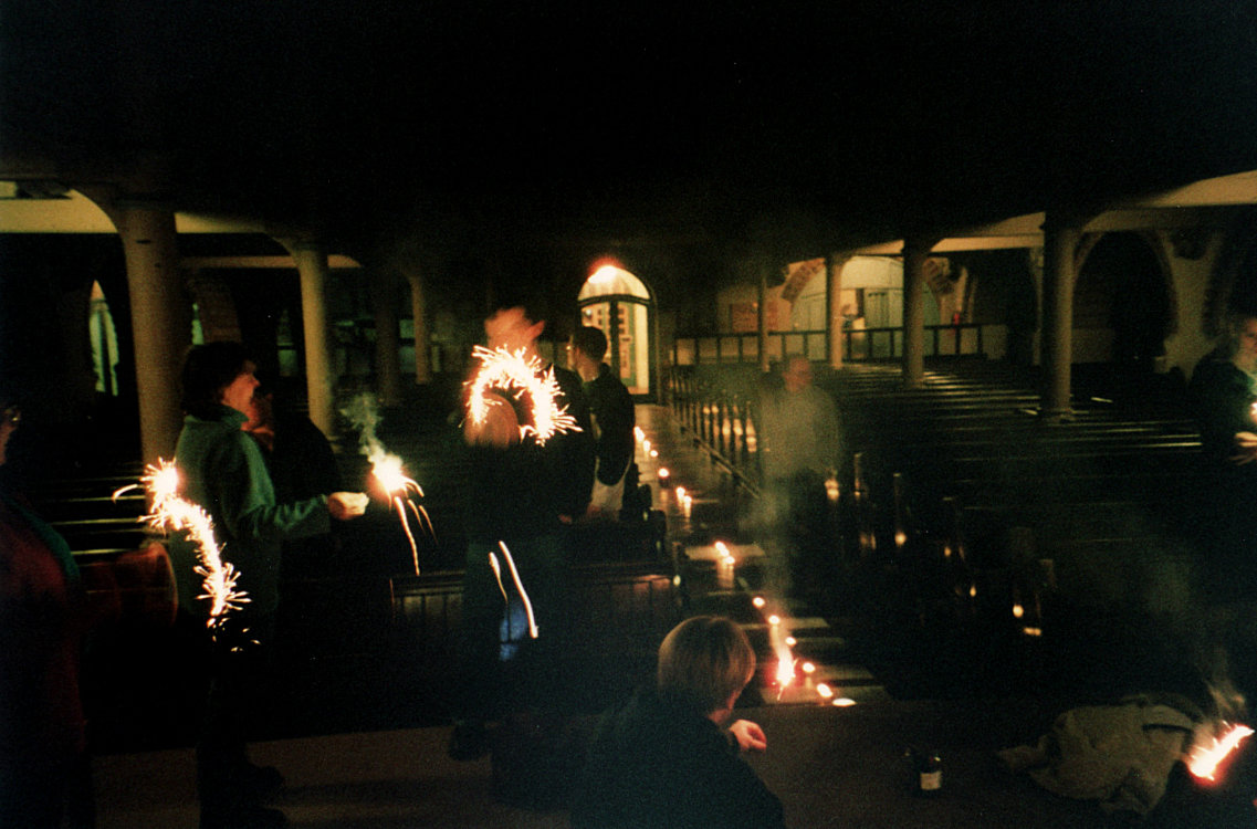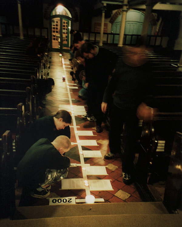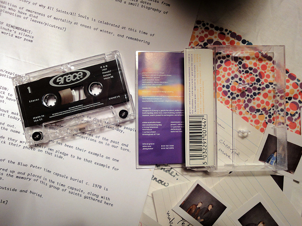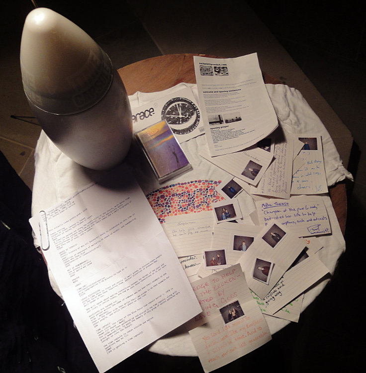 We made a millennial time capsule. Contents: Grace t-shirt, order of this service, Grace album cassette, current Grace flyer, order of service for the Greenbelt mainstage service we had done in August, postcards with pledges on, and photos of the congregation. |