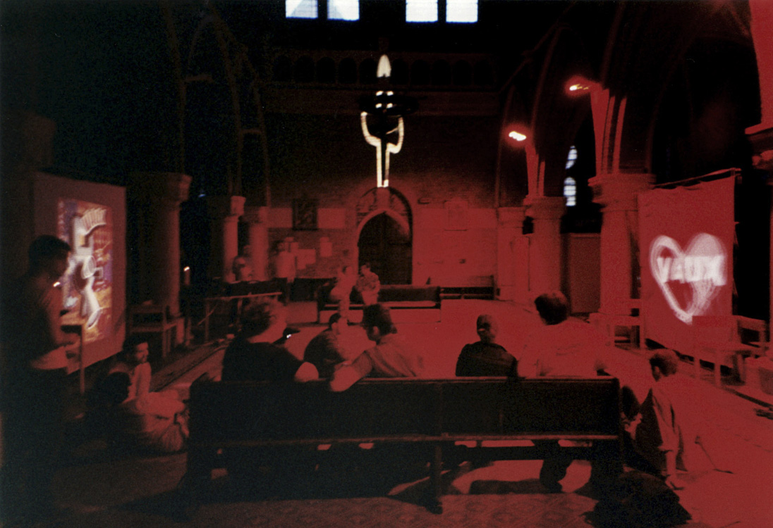 A quiet service. Nothing spoken, just 4 images painted by one of the group, accompanied by 4 pieces of text and ambient music in beautiful quadrophonic sound. |