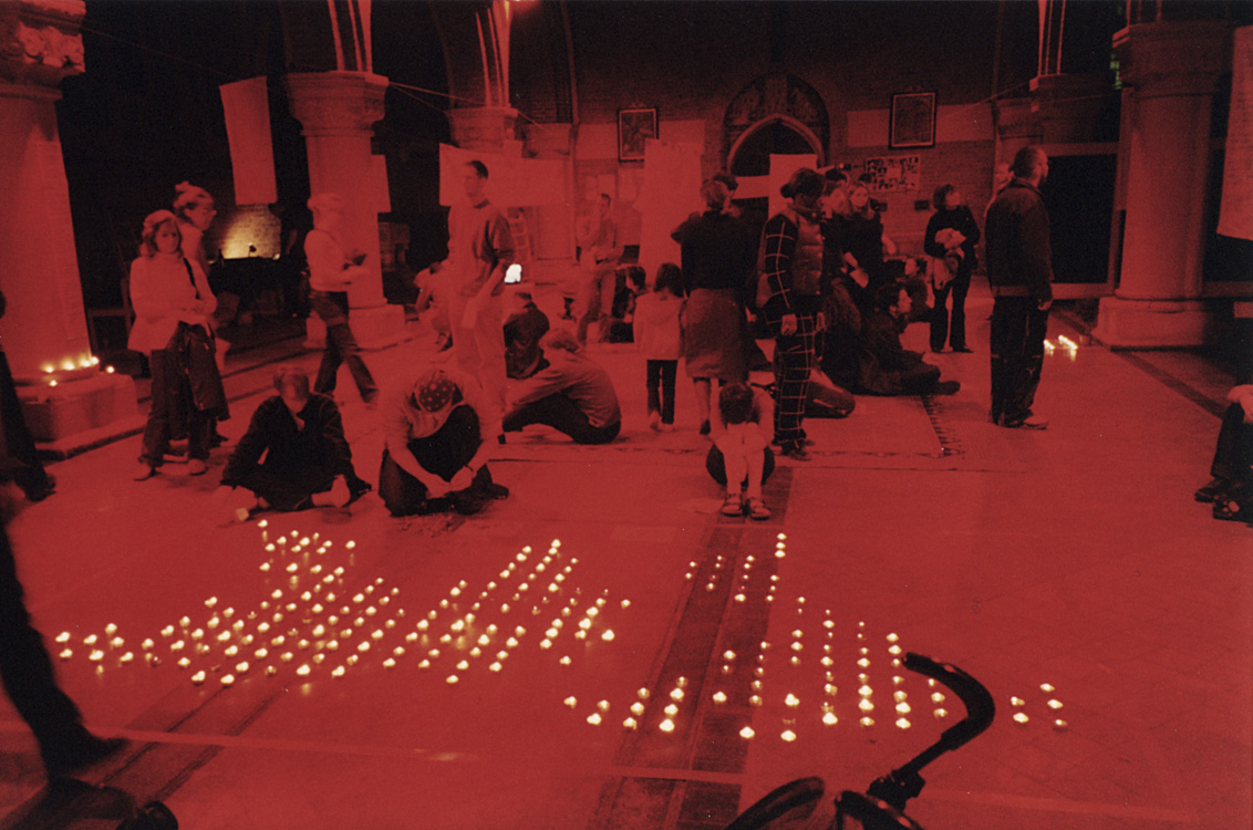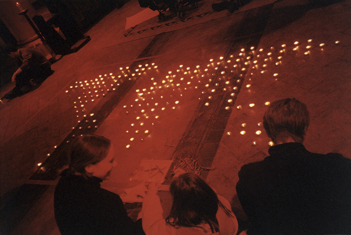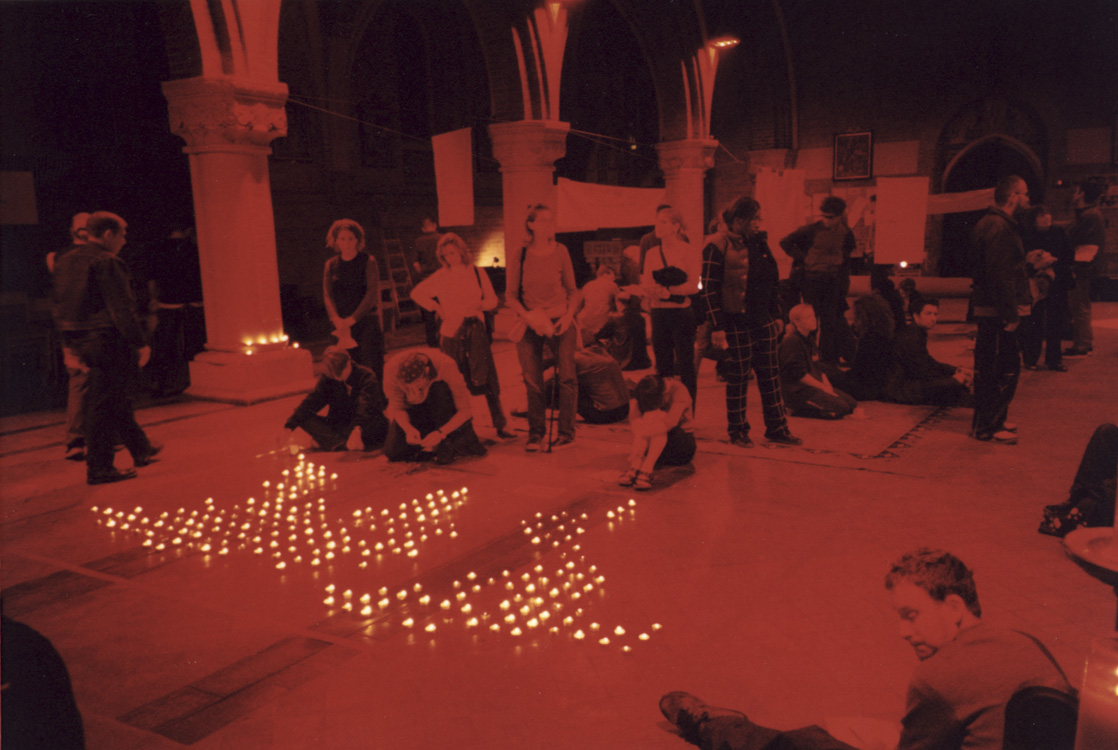 7 or 8 stations were set out, with various poems, writings from Rilke and Rumi and prayers in various languages set around. A dot-matrix map of the world was set out in night-lights. |