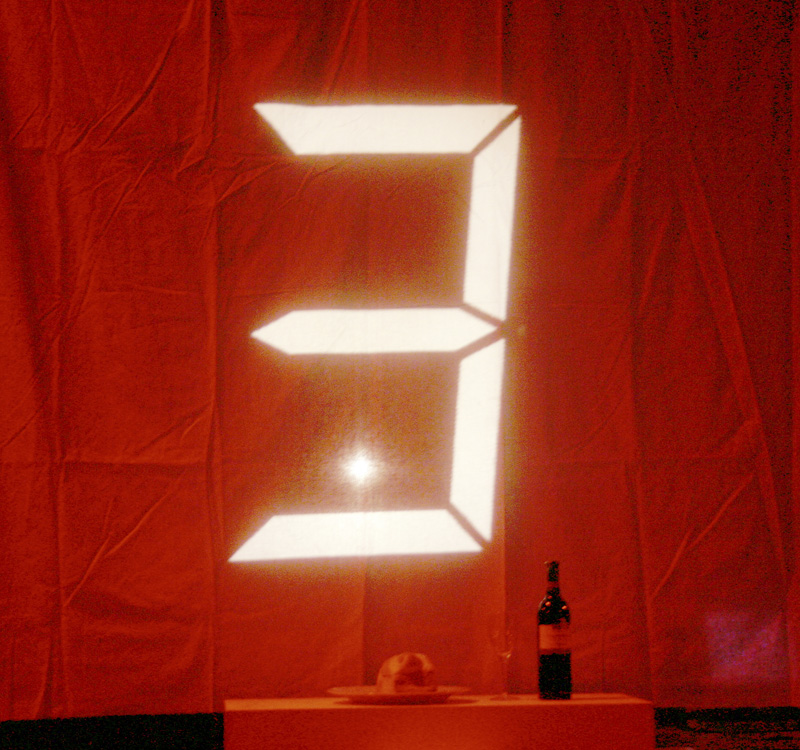A service about mortality. The numbers are projected on four screens defining the worship space. They count up the seconds 0 to 9 then back to 0 again. The counts are not synchronised.
