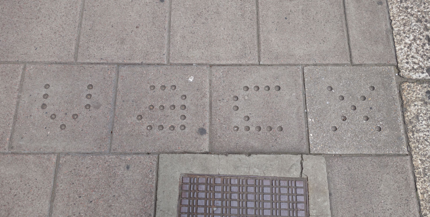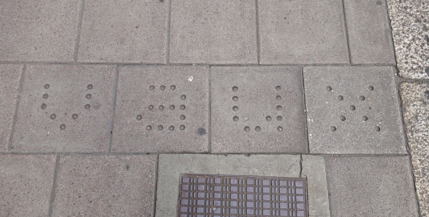 This work involves a carefully orchestrated process. Rabagliati removes the original pavement stone and replaces it with a temporary one. In the workshop he drills each letter into the slab, and then returns to the street to relay it in its original position. The process involves meticulous attention to detail but is at the same time liberating for the artist. Rather than asking permission to make these public works, Rabagliati just goes ahead and does it. He dons the clothes of the streetworker, luminous jacket and boots, in order to become part of the street. He notes, "No-one questions me: a policeman passes by; a street cleaner sweeps past." |