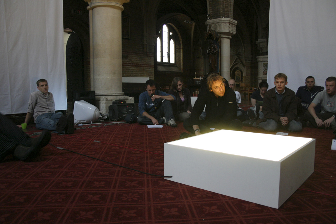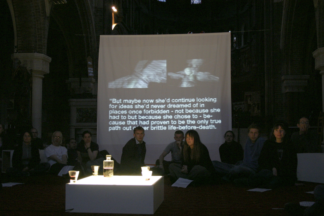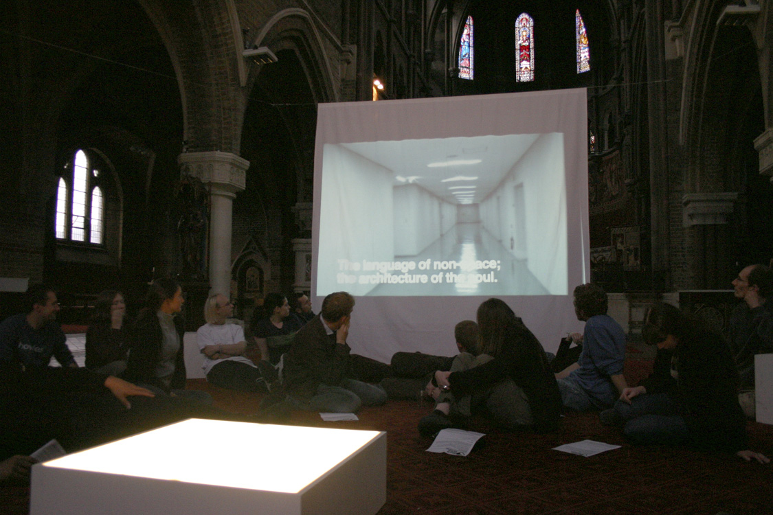 From 'the urban as spiritual space'. After this, a section called 'Waiting', where we watched a video of a railway station platform and waited with the commuters for a train to arrive, ten minutes in silence. No photo because the click of a camera would have broken the tension. |