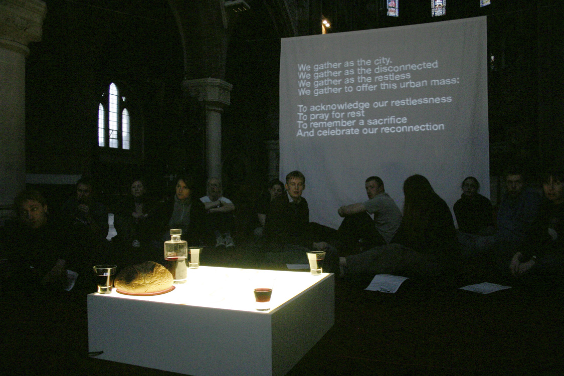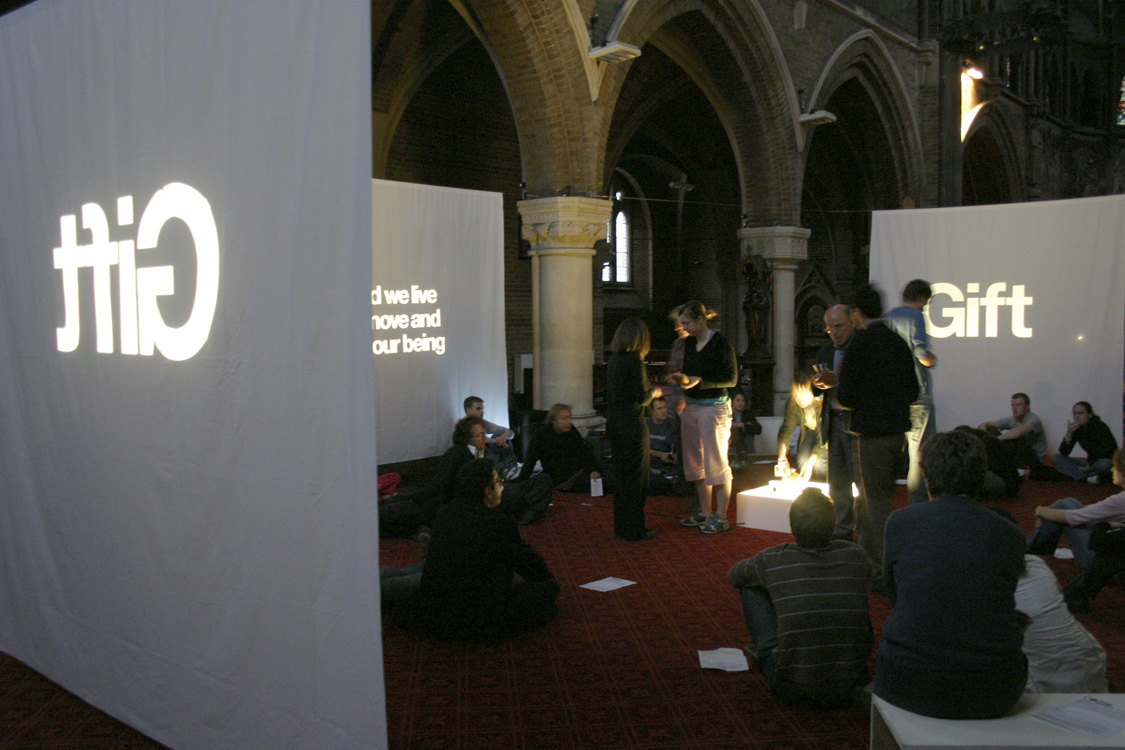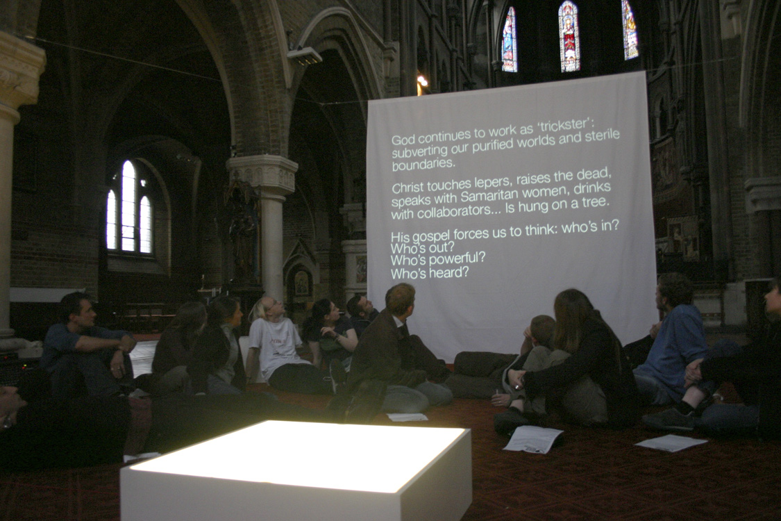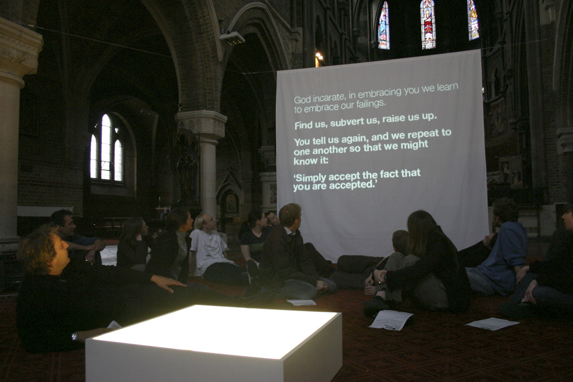 The second section was titled 'Mistakes we knew we were making'. The congregation watch video presentations revisiting major Vaux themes of the past: 'beautiful imperfection', 'an ache for justice', 'dirt', and 'the urban as spiritual space'. These were described as 'maps' by which Vaux explored the territory of urban Christianity. |