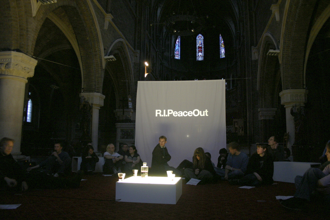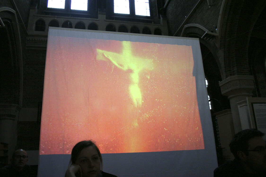 From 'Eleanor Rigby' by Douglas Coupland. The final section of the service, called 'We loved to turn you on', cut a rapid series of images [many from this website] over the Beatles' 'A Day In The Life'. After the final crescendo and fade, a silent 'manumission': photographs of the streets outside call us into the world. |
