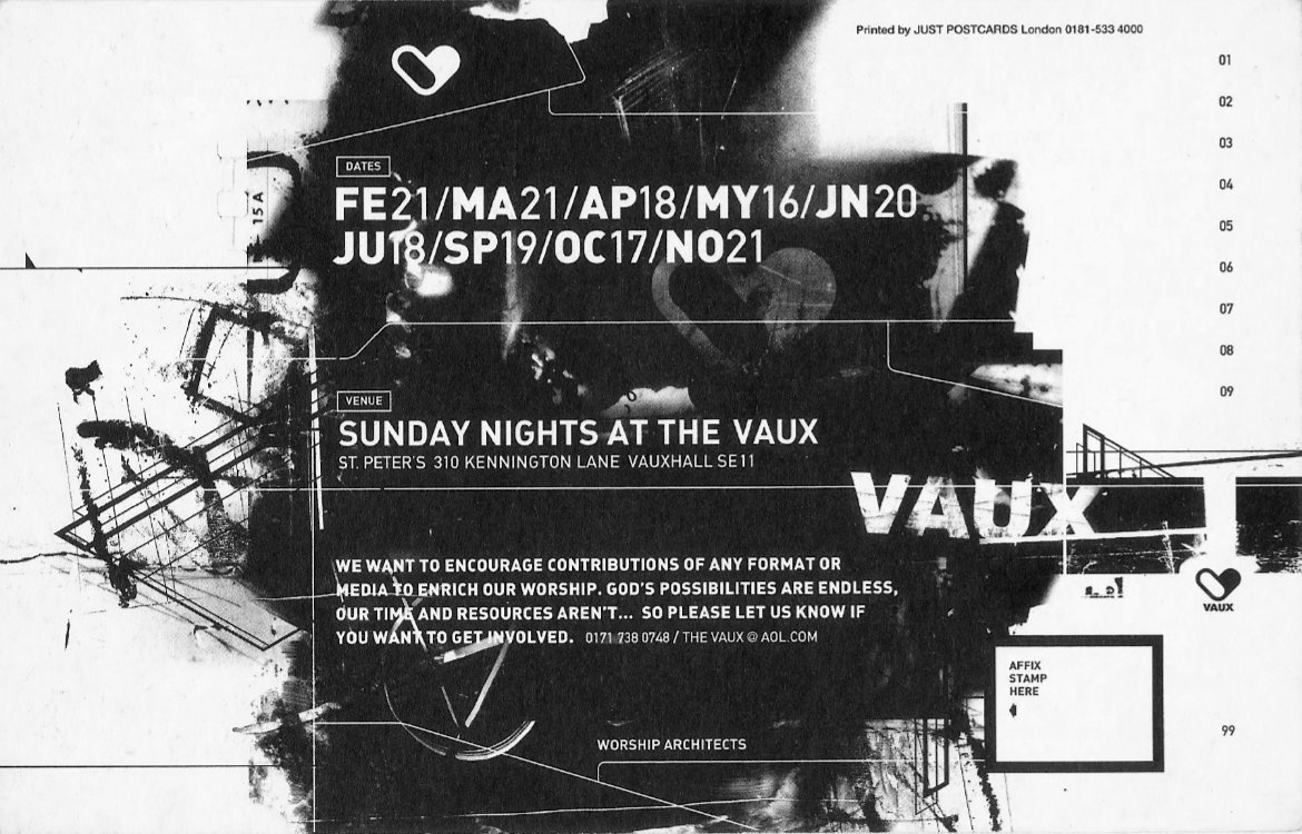 1999 Vaux flyer - reverse. The dates of the services in the archive section of the website. |