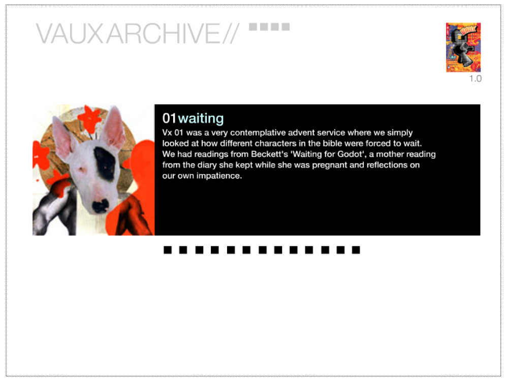 1999 Vaux flyer - the small image on the archive pages. |
